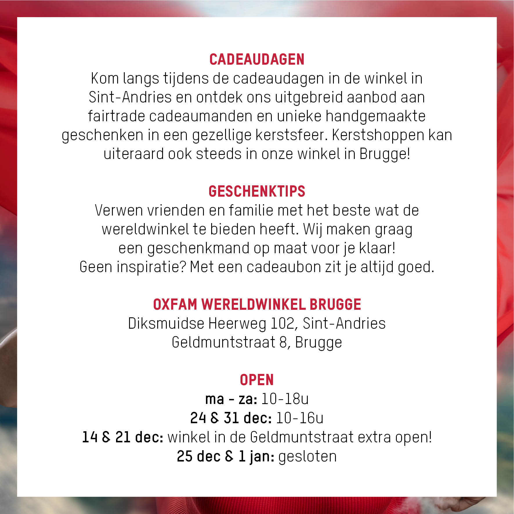 Onze vzw Oxfam Wereldwinkel Brugge groepeert momenteel vier Wereldwinkels in Brugge, Gistel en Knokke-Heist.